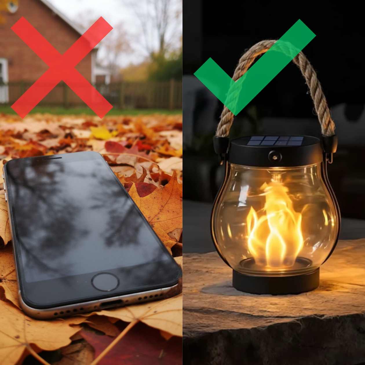 Fall means more time outdoors — bonfires, evening dinners, pumpkin carving on the patio. But when your phone dies and you need to check a recipe, snap a photo, or call someone, most outdoor lights are useless.